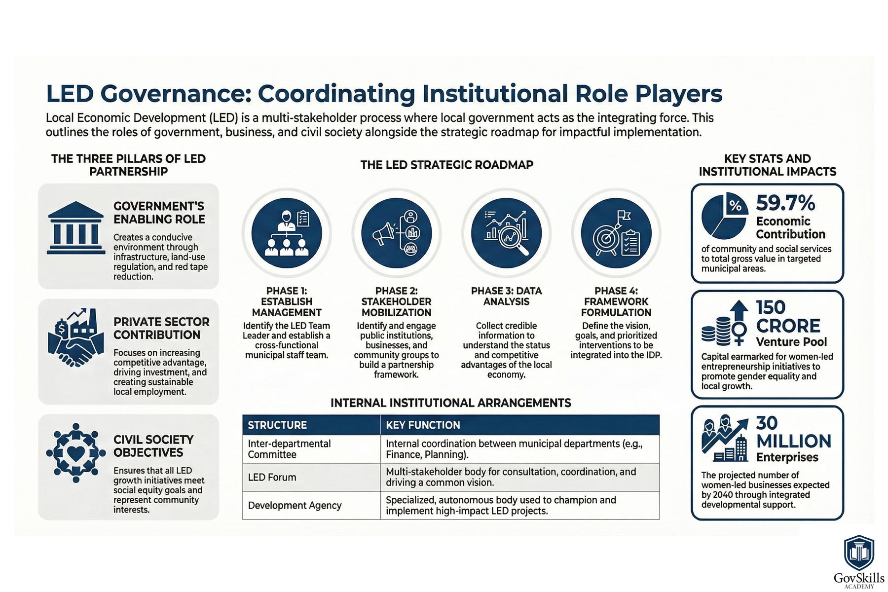 The course on “Institutional Arrangements and Network Instruments for LED Implementation” emphasises that Local Economic Development (LED) cannot be achieved by government alone,. It requires a coordinated, robust partnership between the public sector, private enterprise, and civil society.